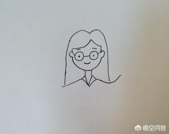 1、首先准备好画纸画笔,先画出好老师的眼镜和眼睛;