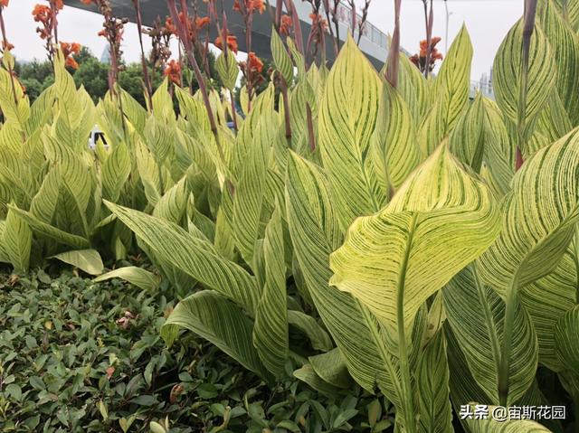 5.白粉美人蕉:花较小,花色黄绿或具红斑。