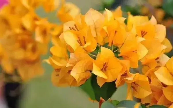 黄金色三角梅,是一种黄色品种。比较昂贵,花色可随季节发生变化,有橙色、黄色、金黄色、淡黄色。该品种株型美观,生长迅速,适合庭院栽培。