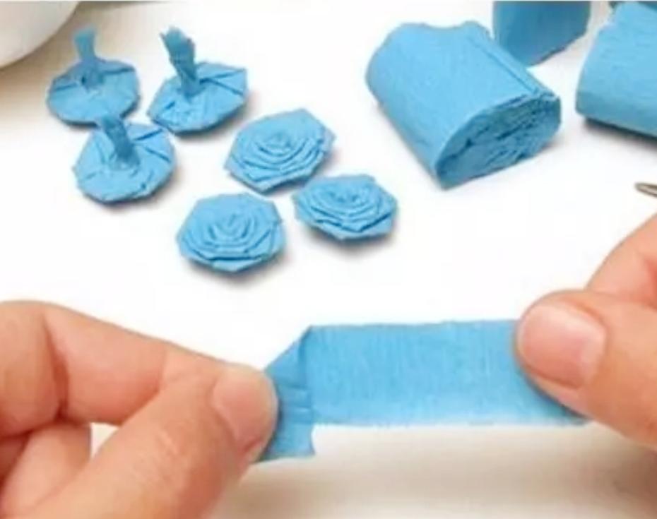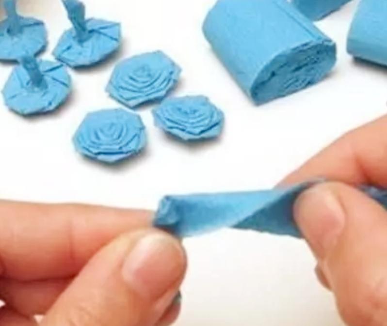 对折一下绕一下、折一下绕一下,最后就能形成玫瑰花形状。