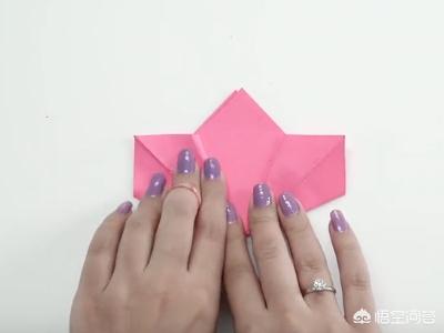 9、将右边的小三角与左边的小三角对齐,粘牢,形成花朵的一个花瓣。