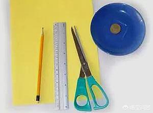 准备材料:彩纸,笔,尺,剪刀,一元硬币,碟子