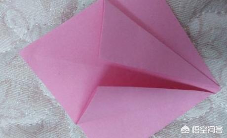 接下来,我们把其中一面翻到另一边,把中间的小三角向下折,再把刚才翻过去的那面翻回来。