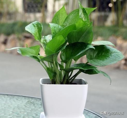 绿萝能吸收空气中的苯、三氯乙烯、甲醛等,极强的空气净化功能,有绿色净化器的美名。