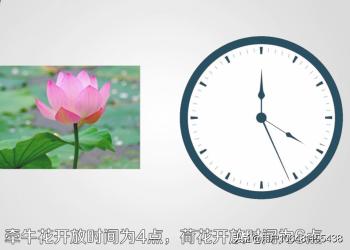 2、比如丝瓜花开放时间为19点,牵牛花开放时间为4点,荷花开放时间为6点,并收集相应的花朵图片。