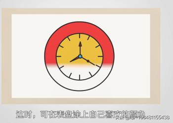 4、然后从圆环的中心点画出花种的时针、分针、秒针,然后上色。