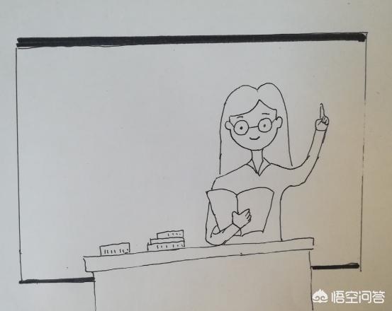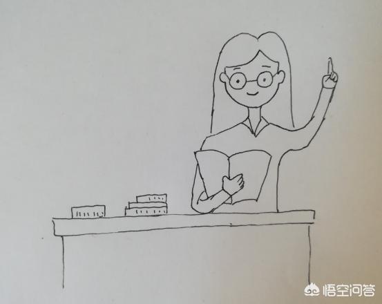画老师,一定要画出特点寥寥数笔,如何让人看出你画的就是老师,而不是别的职业?我觉得,手中的粉笔面前的黑板,是写意老师的一组经典道具如果画眼镜、书本、教案,不易表现,并且容易与别的职业混淆如果围一圈学生,更是给自己的绘画作品添麻烦——当然,你要创造一幅大作另说否则,漫画速写式地画老师,我推荐【黑板、讲台前的教师】形象,数笔即可传神