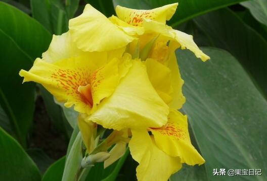 4.斑纹美人蕉:花大,花鲜黄或深红有斑纹。