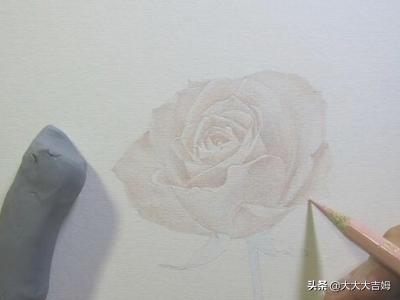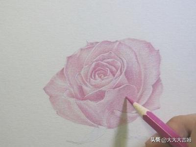 2.用淡粉丝的彩铅描绘出花瓣的颜色,但是描绘颜色的时候,有的地方发淡一点,有的地方深一点,这样玫瑰花的整体形状就出来了。