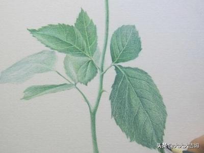 7.左面的叶子和右面的叶子颜色要有一点差别,形成一种空间感和距离感,可以用米棉棒擦一下,效果会很不错!