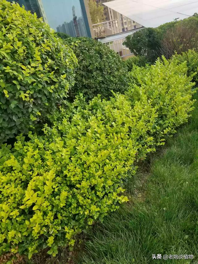 绿化带是城市绿地、道路隔离带、小区单位院子常用的绿化形式,金叶女贞群植成带状,色彩醒目,非常漂亮。