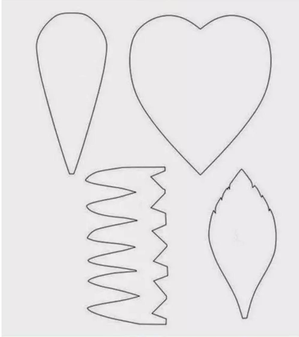 用笔画出3种形状的图案剪下来,大的最后使用,锯齿边的是叶子。