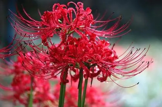 红色的彼岸花有着动人温柔的寓意,红色彼岸花颜色鲜艳似火,给人一种温和温馨的感觉,可将红色彼岸花送给心仪的女孩子,赞美她温柔动人感觉。