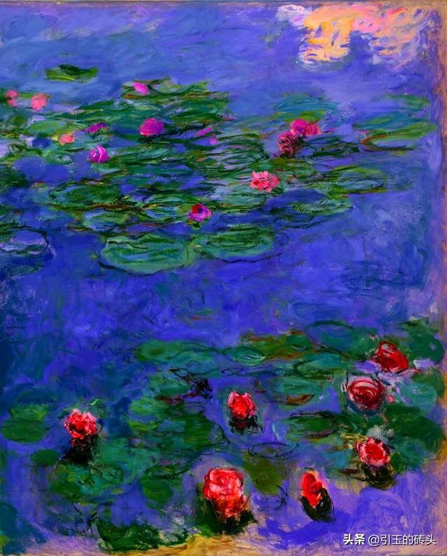 所以对于印象派画家而言,绘画创作,是表达大自然瞬间再现,丰富变幻的色彩,如莫奈的画作《日出印象》,一轮红日,从布满浓雾的海平面升起,晨光照射海面,画家用写意豪放的笔触,表达动荡的海水泛起粼粼波光