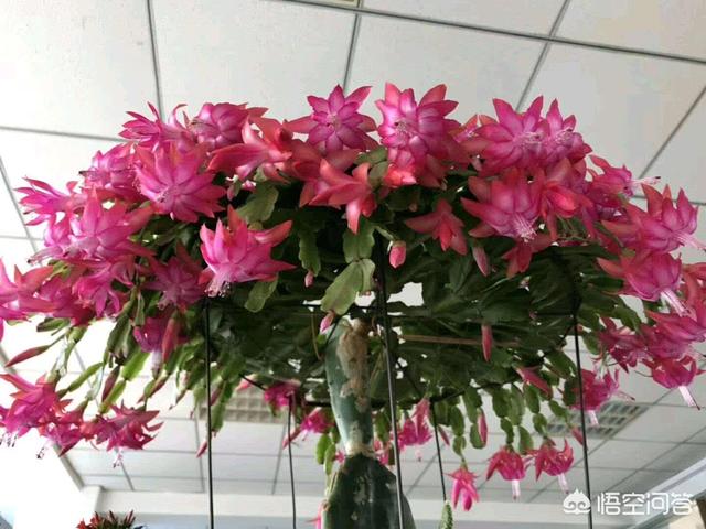 第1种就非蟹爪兰莫属了,蟹爪兰是一种年宵花卉,它从秋季开始开花,一直不间断的开到春季四五月份都是有可能的,它花量非常的大,如果单纯的栽培不嫁接,让他自己长根,他能够开花,但是开花以后后期养护就不容易了,所以说现在市面上最常见的就是嫁接的蟹爪兰,用叶仙,用青叶或者是用三角以及其他的仙人掌科类的植物,嫁接上以后枝条长势快,养上一年两年嫁接上多层,枝条层层叠叠,每次开花就能够开上几千朵花,非常的壮观,非常的漂亮,而且养护简单,耐干旱,喜欢看花的花友建议你养上一盆蟹爪兰。