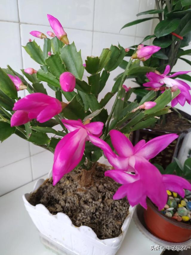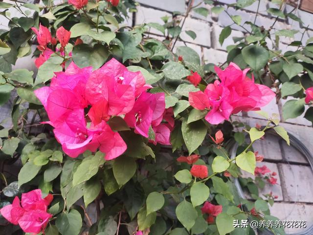 第2种就是三角梅,如果您家庭光照比较好的话,可以养上一盆它,因为它非常的喜光,把它放到一个光照充足的阳台上去养,它就能够一年四季一直开花不间断,养他非常的简单,我们只需要保证着温度不低于15度,多给他见光照,定期一个月给他2~3次的磷钾元素含量高的肥料补充着,比如花多多的2号,这样他就能够快速的生长,生长的同时就会快速长出花苞来,一次就能够开好几个月的时间,开完花以后我们及时的给它修剪,它就能够花开二次,但是一定要记住,浇水不要太频繁,一般盆土干透给它浇透就可以了。