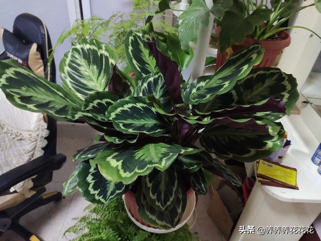 第1种我们可以去养一些观叶类的竹芋,竹芋类它的品种是非常多的,有彩虹竹芋,孔雀竹芋之类的,这些在家庭中养的话,他光照需求量不大,好多人家庭缺光是比较严重的,我们可以养上一盆它,它养护非常的简单,不要用大盆,配土配置透气性好一些的土壤,平常浇水的话,土表干了及时的给它浇透水,放到一个见散射光或者是弱光的地方去,千万千万不要暴晒,保证一定的空气湿度,每天用喷壶的喷雾去给它喷上一次,这样就能够让它不出现问题,叶片不干,根系快速的生长,越长越繁茂。