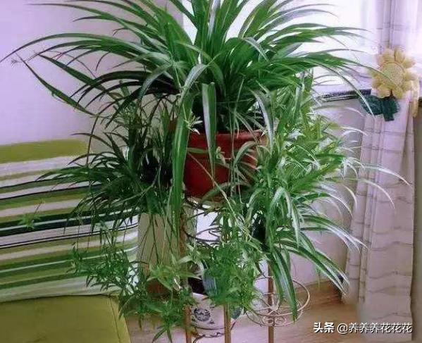 吊兰长长的垂下来,像兰花一样优雅,也是很值得室内养护的花卉植物。不过要记得及时浇水,防止吊兰缺水叶片不好看。另外要散射光养护。