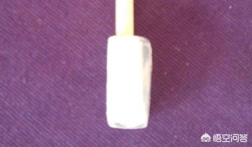 3.用双面胶粘贴在桔木棒上面,做出棉棒的形状。