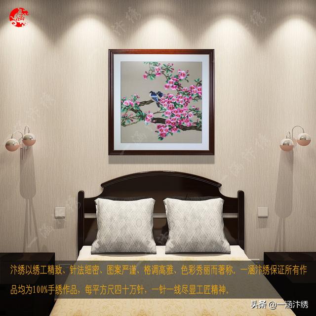 卧室选装饰画,选择手工汴绣制作的花鸟画就很好,花鸟画可爱,还能够为家庭带来美好的气韵,让家人更加和睦
