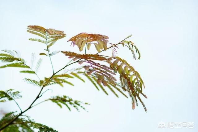 紫叶合欢新叶鲜红至紫色,仲夏变暗紫色,入秋又变红色,其花如火焰簇簇。是国内目前最有前途的乡土乔木树种。