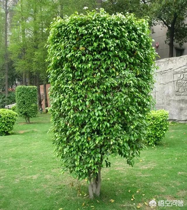 垂叶榕叶片,碧绿,小,薄,有些卷,株型密实,垂叶榕树做行道树很多,树冠不会生长过大,大棵榕树其实也可以孤植,枝叶茂密,更遮阴。