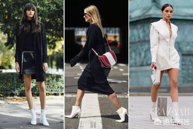 从去年就开始火的白色的尖头短靴是女人们搭配裙装的好帮手!深色、浅色系裙装搭配TA一点都不突兀,自带优雅~