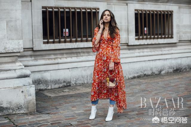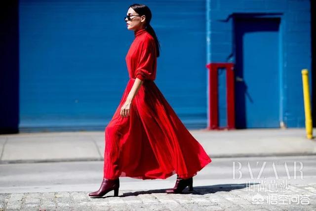 选择一条颜色鲜艳的连衣长裙搭配同色系或者白色的尖头短靴都非常合适!尖头靴的性感真的是女人们的特殊利器~