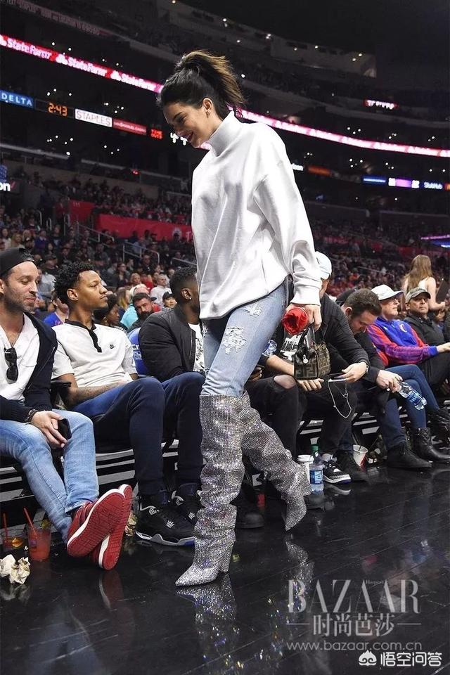 肯豆也是穿着这一双价值七万元的鞋看男友Blake Griffin的比赛,尖头元素加分不少,让看起来繁复的鞋型有延长感。