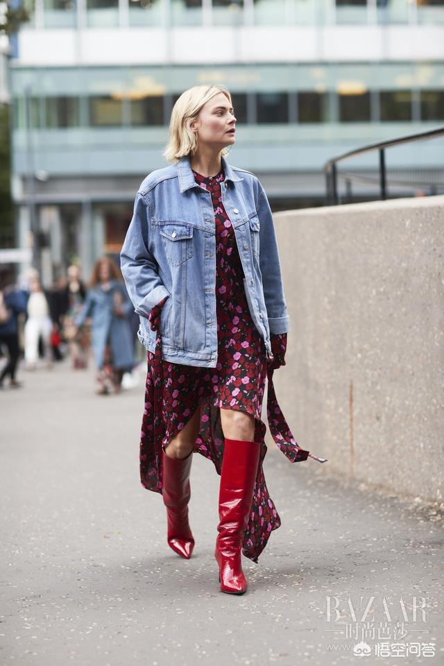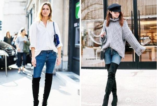 过膝长靴除了光腿穿,和牛仔裤一起穿也是超级时髦的,显瘦显高的效果也一样赞,而且这样穿,就仿佛穿了两条裤子,保暖效果更胜一筹。在选择牛仔裤的时候,最好选择紧身的牛仔裤款式,这样裤子可以很好的贴合腿型,穿上鞋子的时候,就会非常利落流畅,腿看起来更加纤细修长,若是搭配宽松的裤子,靴子就根本穿不进去了,就算勉强穿进去也会堆叠在一起,非常难看。