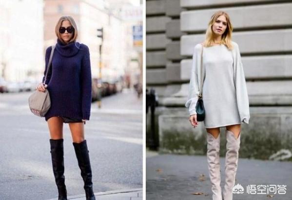 一、长毛衣+过膝靴