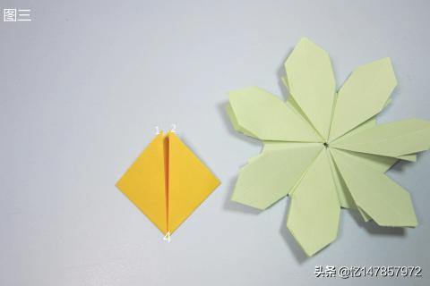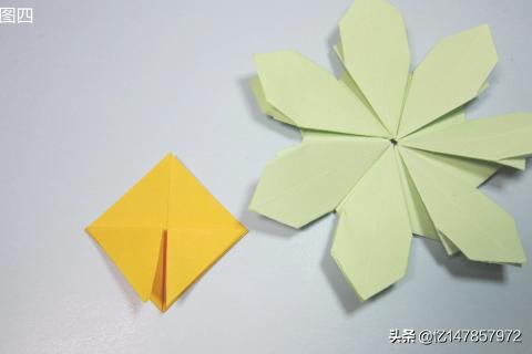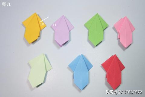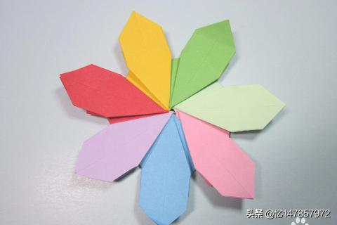 11、依次按照图十的操作步骤,将剩余的部件全部粘好组装完成,这样美丽的七叶花就折好了。纸张的颜色越鲜艳折出来的七叶花就越漂亮。像这样漂亮的花朵小编前面折过很多,包含有樱花、菊花、四瓣花、百合花、喇叭花、五星花、玫瑰花,等等非常多。