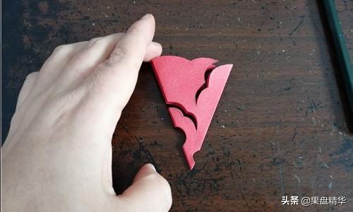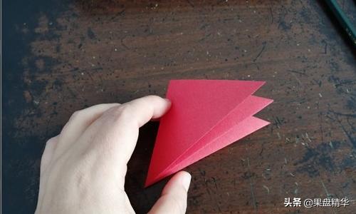 第二步,用剪刀裁剪出一个正方形,然后按照对角线对折。