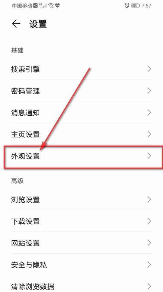 3、点击“外观设置”