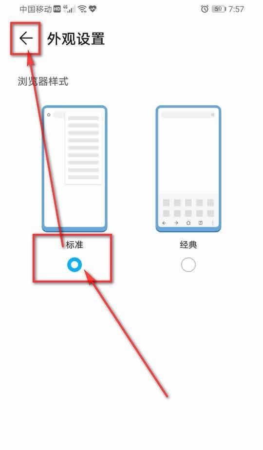 4、先选“标准”,再点击左上角的“←”返回