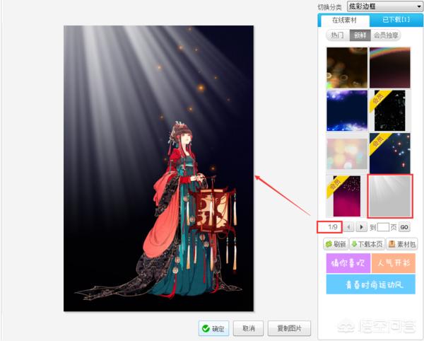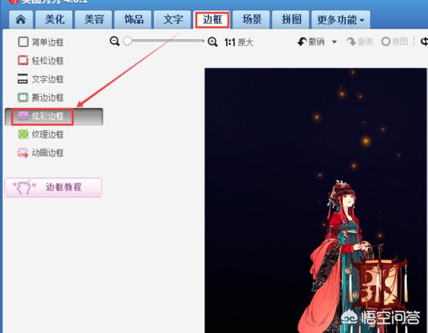 2、边框页面下的“炫彩边框”里也有类似效果,打开炫彩边框,选择炫彩边框设置页面的第一页的最后一个边框。