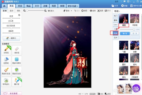 而“时尚”特效里的【亮红】也可以做出太阳光束洒下来的效果。