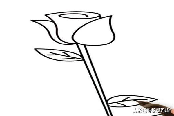 第一步先画出玫瑰花的花瓣,最里面的花瓣紧实而且没有打开,慢慢往外花瓣越来越大,散的更开,画完花瓣后画上花萼、花枝。