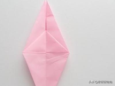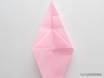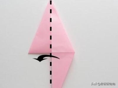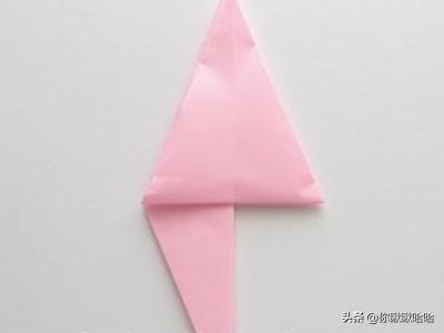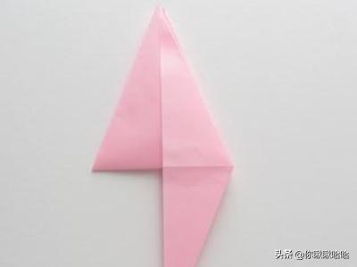 4.接下来,我们把其中一面翻到另一边,把中间的小三角向下折,再把刚才翻过去的那面翻回来。