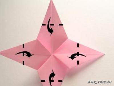17.翻转折纸模型,将四个角向内折叠。