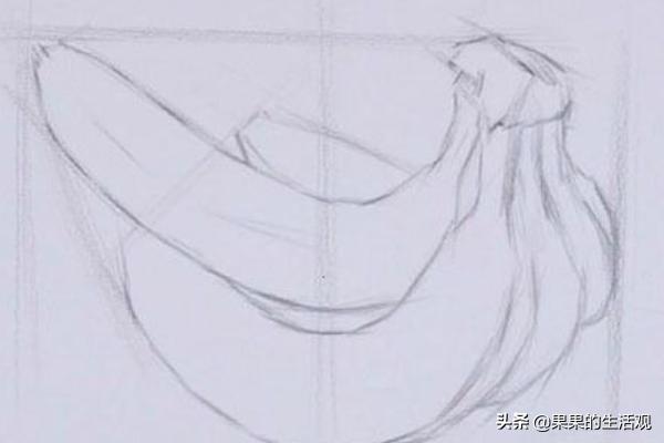 1)用长直线定位置,确定构图,大体上画出香蕉的几个组成部分。